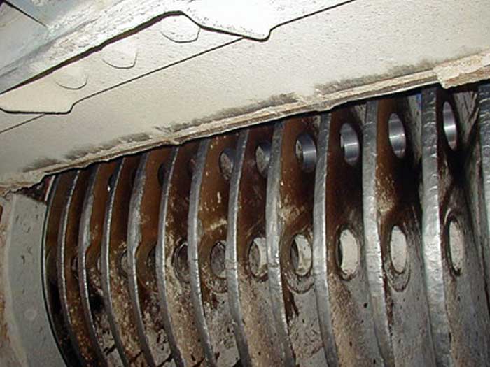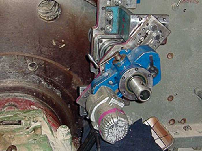New bores for a hammer crusher’s (crusher rotor‘s) hammer shafts had to be inserted to replace existing bores that had exceeded their wear limit. All work was carried out on the assembled hammer crusher.