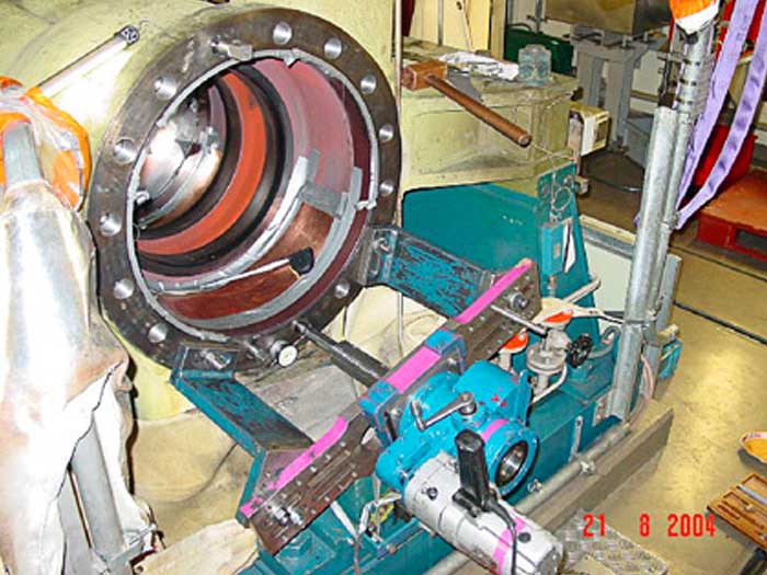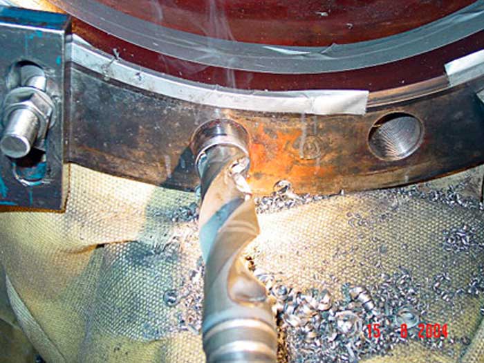 Stud bolts could not be removed or re-turned by the user. The stud bolts had to be rebored without damaging the original thread.