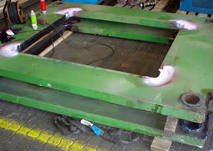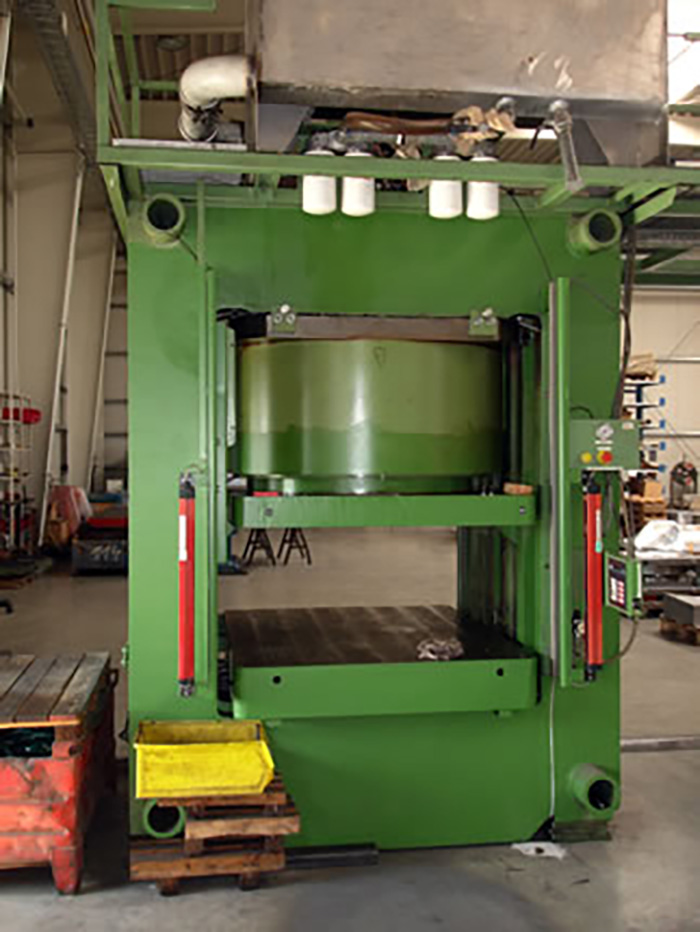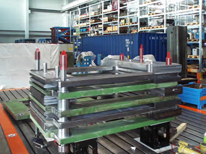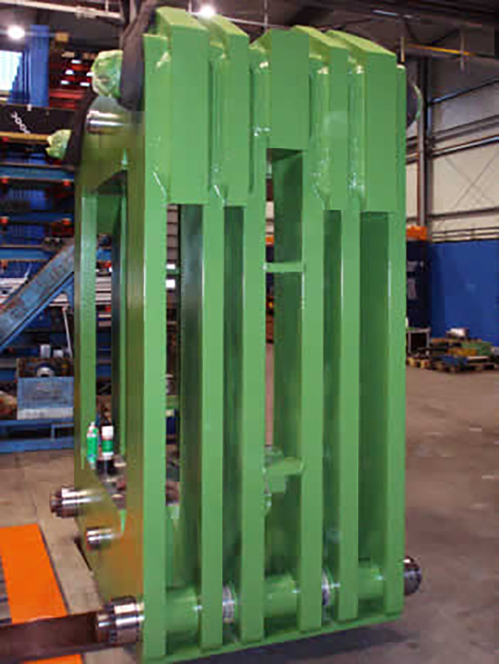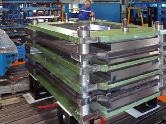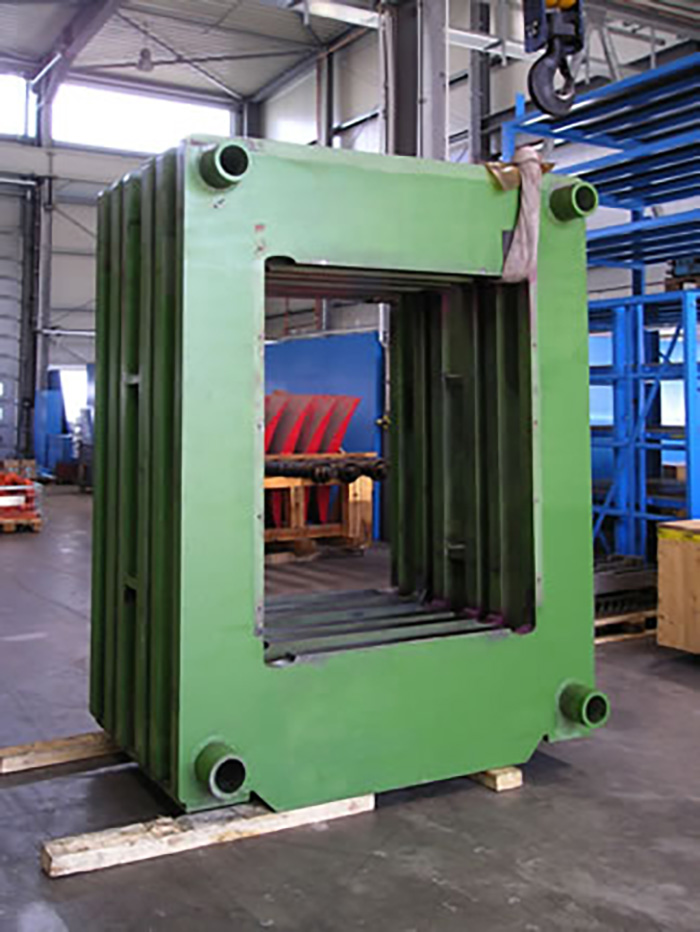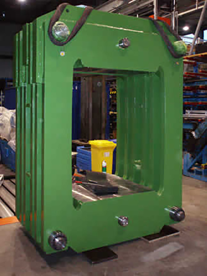 Assembly of the press body enhanced with various anchor plates and six tension rods