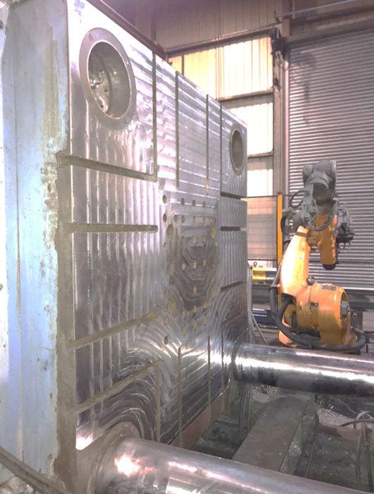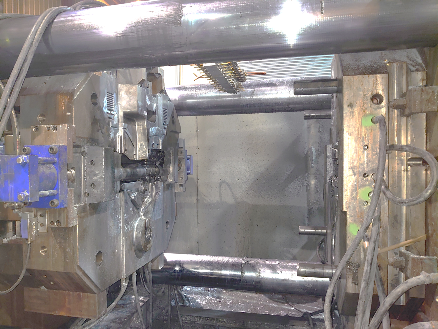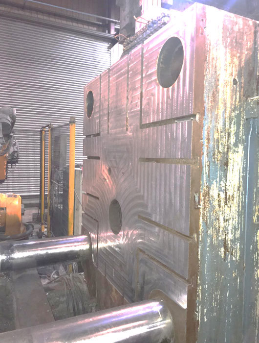 Due to wear issues Metalock are setting up to re-machine the vertical fixed and moving platen surfaces on a Die Casting machine
