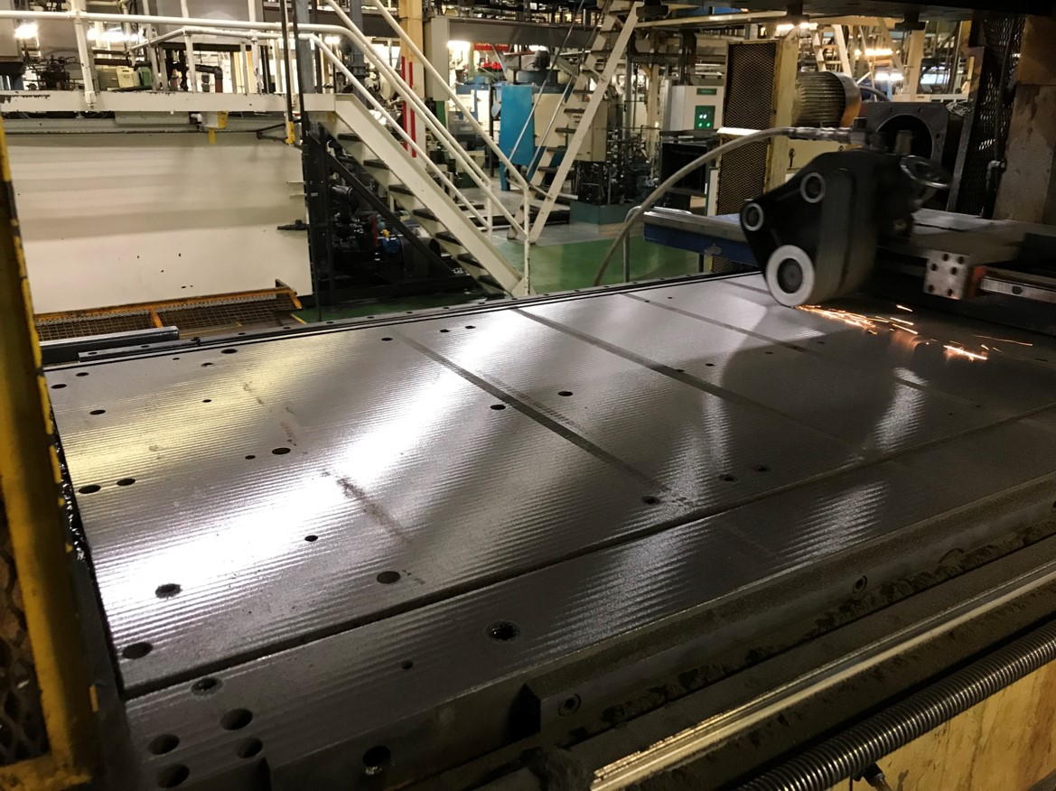 Using our custom built press bed grinding machine.